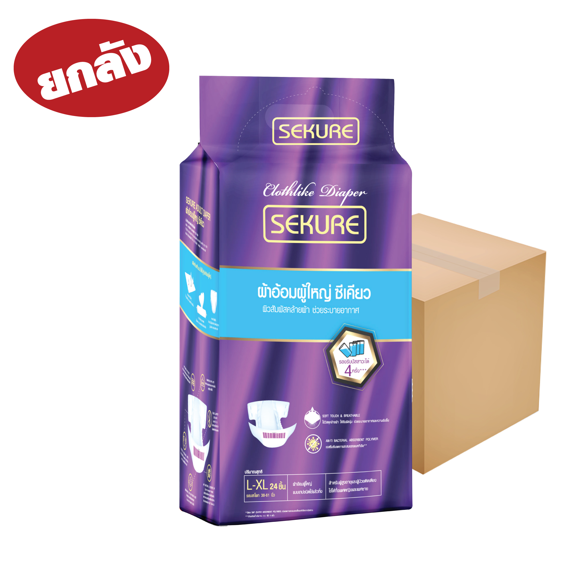 ผ้าอ้อมผู้ใหญ่แบบเทป Sekure (ซีเคียว) ไซซ์ L-XL ขนาด 24 ชิ้น * 6 ห่อ - ของแท้ มี อย. รองรับ