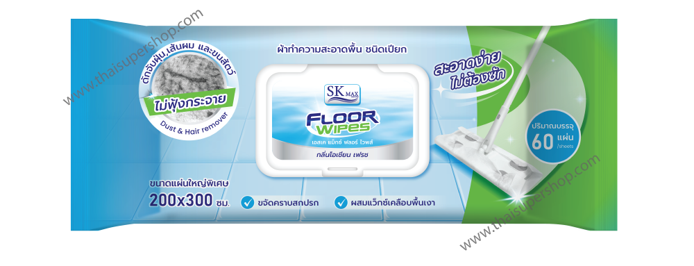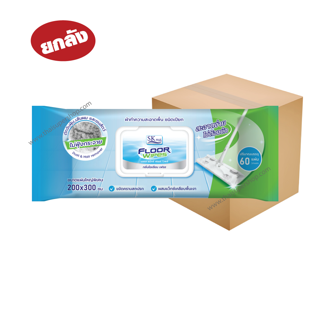 SK MAX ผ้าทำความสะอาดพื้นชนิดเปียก – ห่อใหญ่ 60 แผ่น- ของแท้ มี อย. รองรับ